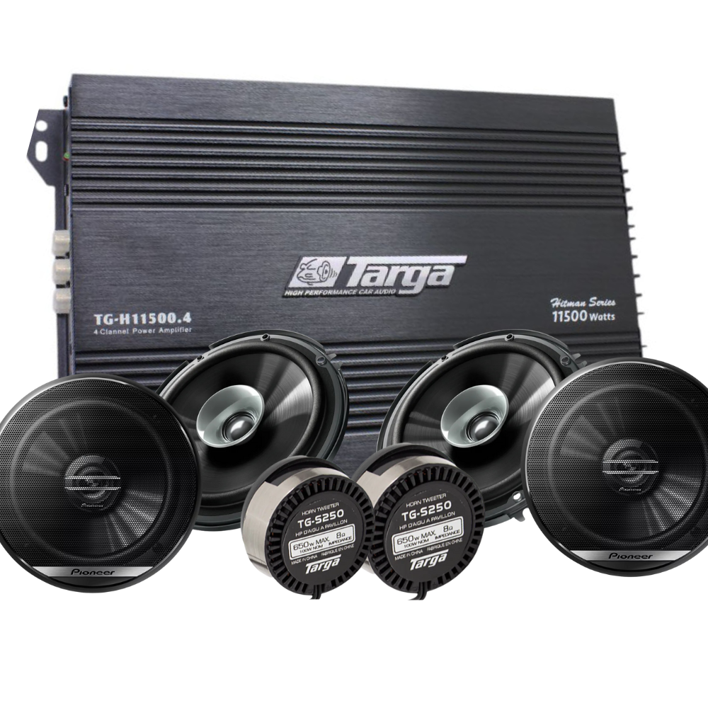 Targa 4ch Hitman 11500W Amplifier + Pioneer 6.5″ 280W Speakers + Targa 650W Tweeters